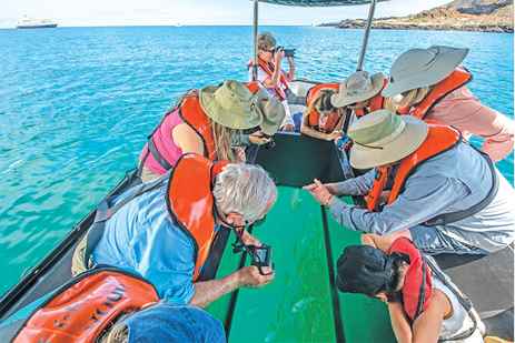 Zodiacs to get to shore quickly, glass-bottom boat, kayaks and paddleboards for personal explorations, snorkel gear and wetsuits for both adults and children, video microscope and underwater video camera.