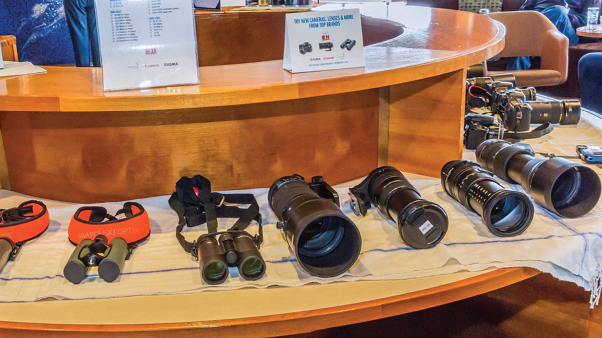 Been yearning to try some big glass? Looking to invest in a new camera but haven’t had the time to research? Dive into the onboard B&H Photo Video Gear Locker with our compliments. Field test new glass, camera bodies, binoculars and more during your expedition. And pre-voyage, you’ll have access to an exclusive photography webinar and gear recommendations. Login to your online documents to access or ask your expedition specialist for details.