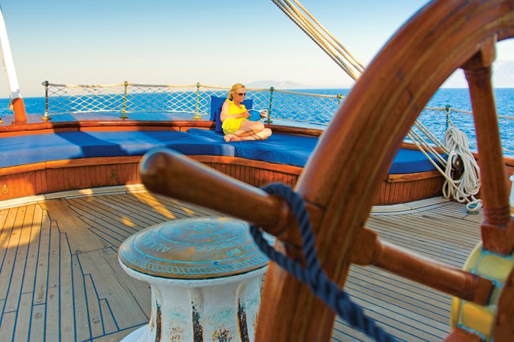 Guests aboard Sea Cloud can watch the careful choreography of reefing and setting the sails by the experienced crew. Lindblad Expeditions-National Geographic sail her to destinations like the Caribbean and the Mediterranean—places with reliable winds and islands perfectly situated for a ship of her kind.
