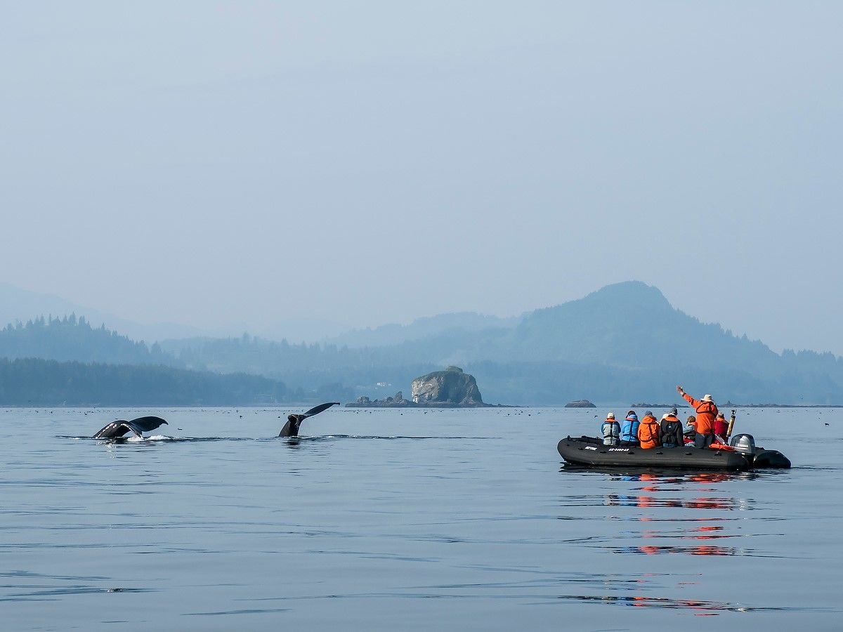 After a night of gentle rocking as we sailed through the Shelikof Strait, we awoke to a perfectly calm morning and found National Geographic Orion anchored in Geographic Harbor on the Katmai coast. Katmai National Park is a massive park, on the southern coast of mainland Alaska that is home to the well-known Brooks Falls. We were set to explore the lesser traveled and rugged coast of this beautiful park while looking out for our favorite bruins, the brown bear. The many small bays along this coastline are usually filled with brown bears that come down from the hills to feed on the sedges in the flats and salmon in the streams.