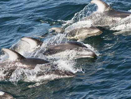 The weather dance must have chased the fog down Johnstone Strait as we emerged from the cloud bank into sun and up ahead—a long line of Pacific white-sided dolphins! How lucky can you get? After a wild breathtaking photo-making hour with at least 500 of these amazing leaping joyful beings, we continued down the strait toward our meeting with slack water in Seymour Narrows.
