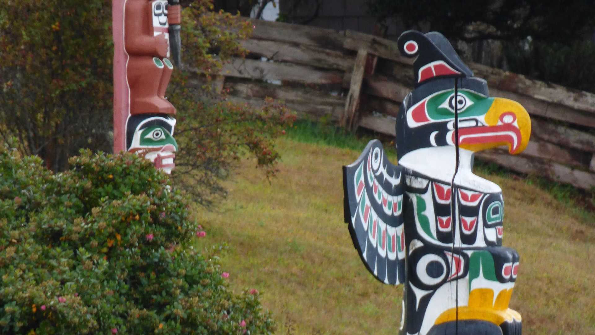 The native art gallery was full of Kwakwaka’wakw ceremonial masks, informative videos, and guides that shared the plight of reclaiming their heritage. Afterward, a short walk up the hill toward the tallest totem pole in the world (173 feet high) took us by surprise as artists were actively carving a totem pole.  Friendly First Nations people invited us into a potlatch house to share with us what remains of their culture.  The smell of firewood filled the air inside the smoke-filled Big House as dramatic beams of sunlight pierced through the skylight onto the dirt floor.  This potlatch house is the region’s largest with huge native painted murals and carvings on massive timber; capable of sheltering over 1,000 people.  Dancers today included everyone from the elders to the youngest children, all dressed in traditional designs of red, green, and black fabrics with beads and sequins.  The thumping sound of drums and rhythmic chants from the T’sasala cultural group echoed in the building as dancers circled the smoking fire pit.  A number of different cultural dances were followed by “potlatch” offerings consisting of smoked sockeye salmon and fry bread.