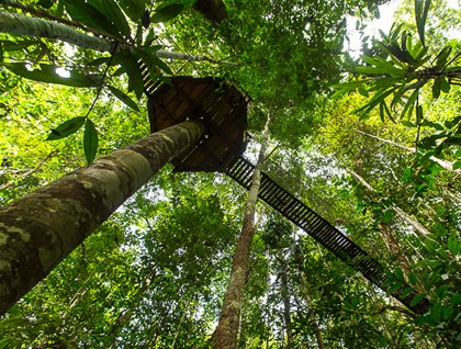 To really experience the jungle you must get on land, or tierra firme, and walk through the rain forest, not an easy task during the rainy season when the rivers flood an area almost as large as the continental United Sates. Amazon Natural Park is a private reserve and an area of high ground along the banks of the Marañon River. Our guides lead us along trails describing the many medicinal plants, and pointing out rubber trees responsible for economic boom in the Amazon Basin of the late 1800s. But clearly the highlight of the morning was traversing the hanging or suspension bridges. What a thrill to walk high in the canopy looking eye to eye with bromeliads and down on the tops of palm trees. A bit adventurous, perhaps, but as one of the younger guests put it, “that’s what makes it fun!”