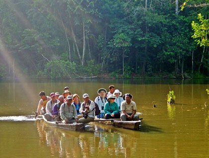 After an invigorating breakfast, we headed out to the forest, first using our skiffs, and then we boarded a couple of locally made catamarans, which took us across a lake with beautiful surroundings. Once in the forest, we enjoyed a nice paced stroll among gigantic trees and strange looking plants. We also learned some of the local plants’ medicinal useses, as locals have developed great knowledge and skills when it comes to curing some minor health conditions.
