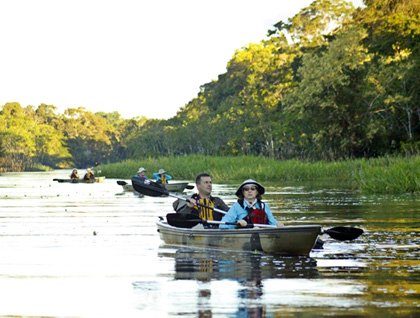 As soon as we were back aboard, we moved the ship to a location known as Nauta Caño. Our options for the afternoon were kayaking or a nice skiff ride up on the creek. As expected, kayaking was the popular choice…the idea to paddle along the riverbank listening to the sounds of the forest was very appealing. For the rest of us the ride on the skiffs was a chance to learn more about the forest and its intricate ecosystem, to take pictures of the abundant photo opportunities, and for the eager birdwatchers aboard to add quite a few new species to their memory databank!