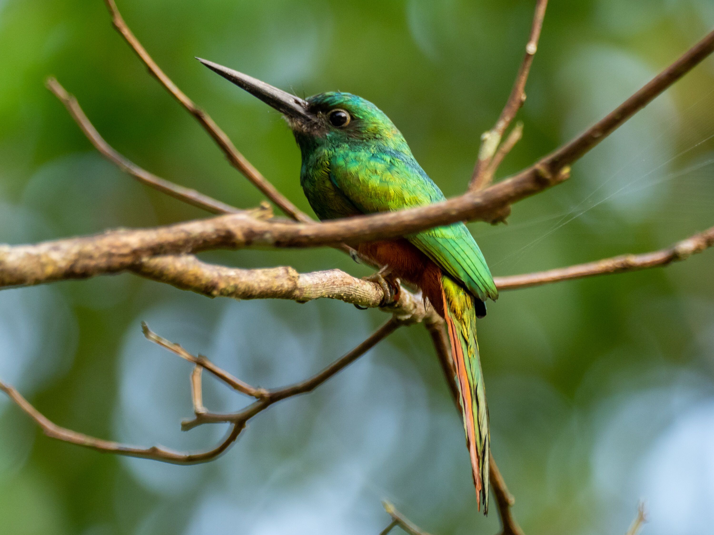 After exploring the Pacaya River and finding jaguars, capybaras, and river otters, we are again near the Marañon River, another major tributary of the Amazon that we are exploring at the end of our week. We came to Magdalena, a secondary water stream that feeds the Ucayali, to explore it early in the morning. This site is very famous for birdwatching. We observed the shoreline from our skiffs and spotted all kinds of river birds and land birds. We observed many types of herons, such as the cocoi heron and the multicolored black-capped heron. We also saw egrets and cormorants fishing. These waters are rich in nutrients coming from the Andes, which mix with the sediments of millions of plants to create an abundance of phytoplankton, food for aquatic creatures. Along the grassy areas, we found brilliant birds, including cardinals, wrens, woodpeckers, oropendolas, toucanets, and euphonias. We came back on board, and our cabin stewards did a presentation on origami towels. They do a great job creating animals of the jungle, such as sloths or monkeys, with the towels in each of our cabins. In the afternoon, we disembarked at a very small reserve to walk into the jungle. Squirrel monkeys came so close to us. At the end of the trail, we found a very small lagoon, where a unique type of plant grows: water lily pads, or Amazonian Victoria regias. Some of our guests kayaked along the Yarapa River, and others explored the area on skiffs. For the first time this week, we got rain! Thunder and lightning invaded the skies of the jungle, also known as the rainforest! Our intrepid guests went out to experience a storm in the Upper Amazon. It was a great experience, and even the sudden change in weather did not diminish the adventurous spirits of our fearless explorers.