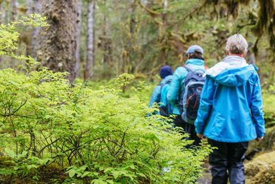 By afternoon the weather had cleared, so we boarded the skiffs for a short ride to the Amazon Natural Park Reserve. We paddled and were paddled across a small man-made lake in wooden catamarans. We spied our first monkeys – dusky ti tis! Our guides led us thru the forest on a muddy and slippery path, climbing small hills at times, and all along the way they were teaching us and pointing out the interesting trees, seeds, ants, lizards and anything they noticed. We are all very interested to see and learn about whatever the guides can find!
