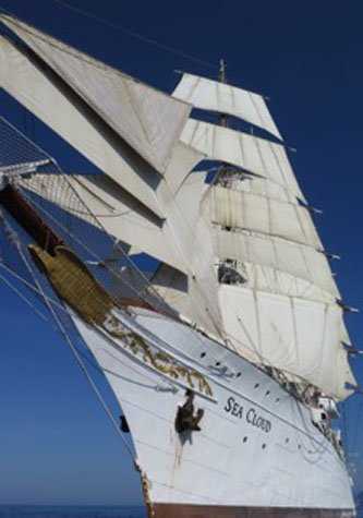 After the breathtaking view of the monastery and from its little terrace we stopped in a tiny cute “chora,” a bit sleepy and taking a rest after the high summer season. Refreshing cold frappes or a swim in the crystal clear water down in the port of Katapola made us ready for the afternoon. When the sails went up we took Zodiacs around the ship to see and photograph Sea Cloud in her full glory riding smoothly through the seas pushed by a warm little breeze.