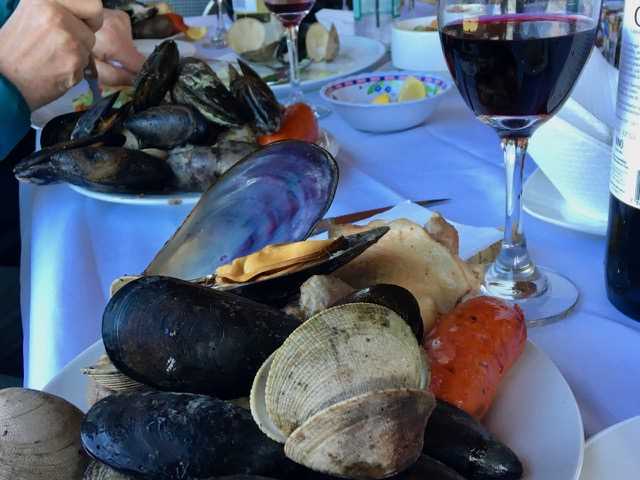 After a bit of a frolic on the beach, it was back to the buses and on to lunch. This time, the second bus spotted the pudu, and the universe was once again in balance! At the restaurant, we found pisco sours and small eats to prepare us for a tour of the kitchen.  The kitchen, outside and behind the restaurant, was a hole in the ground filled with hot rocks mussels, clams, sausages, beef, and potato cakes—a special Chiloé meal called Curanto. It was excellent, and both red and white wine pair great with it!