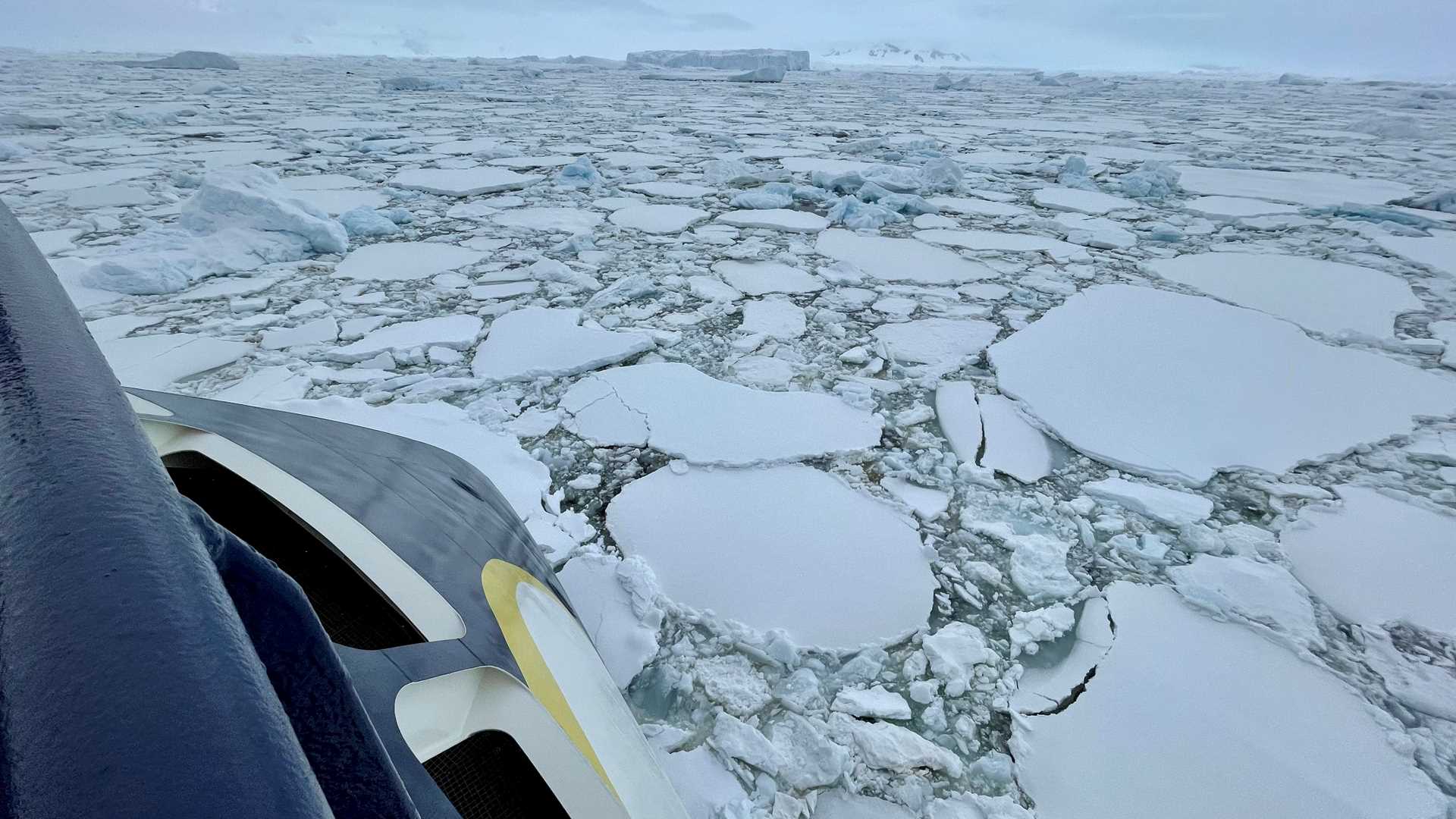 Our final destination for the evening was Lallemand Fjord, and we were lucky enough to find fast ice! Fast ice is essentially frozen ocean that waxes and wanes seasonally with the changing temperatures. We didn’t know if we would find any this late into the austral summer, but our push to come this far south proved fruitful. Under the direction of Captain Martin and his expert bridge team, we pulled the ship onto the ice, dropped the gangway, and spent the afternoon walking on the frozen Southern Ocean. As clouds began to lift and the sun poked through, we could see the entirety of the stunning fjord surrounding us.