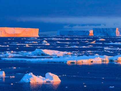 Sunrise came early this morning (3:50 a.m.) as the National Geographic Orion sails through “Iceberg Alley” into the Antarctic Sound. Here, huge tabular icebergs become grounded in the passage between Joinville Island and the Trinity Peninsula, which is part of the Antarctic Continent.