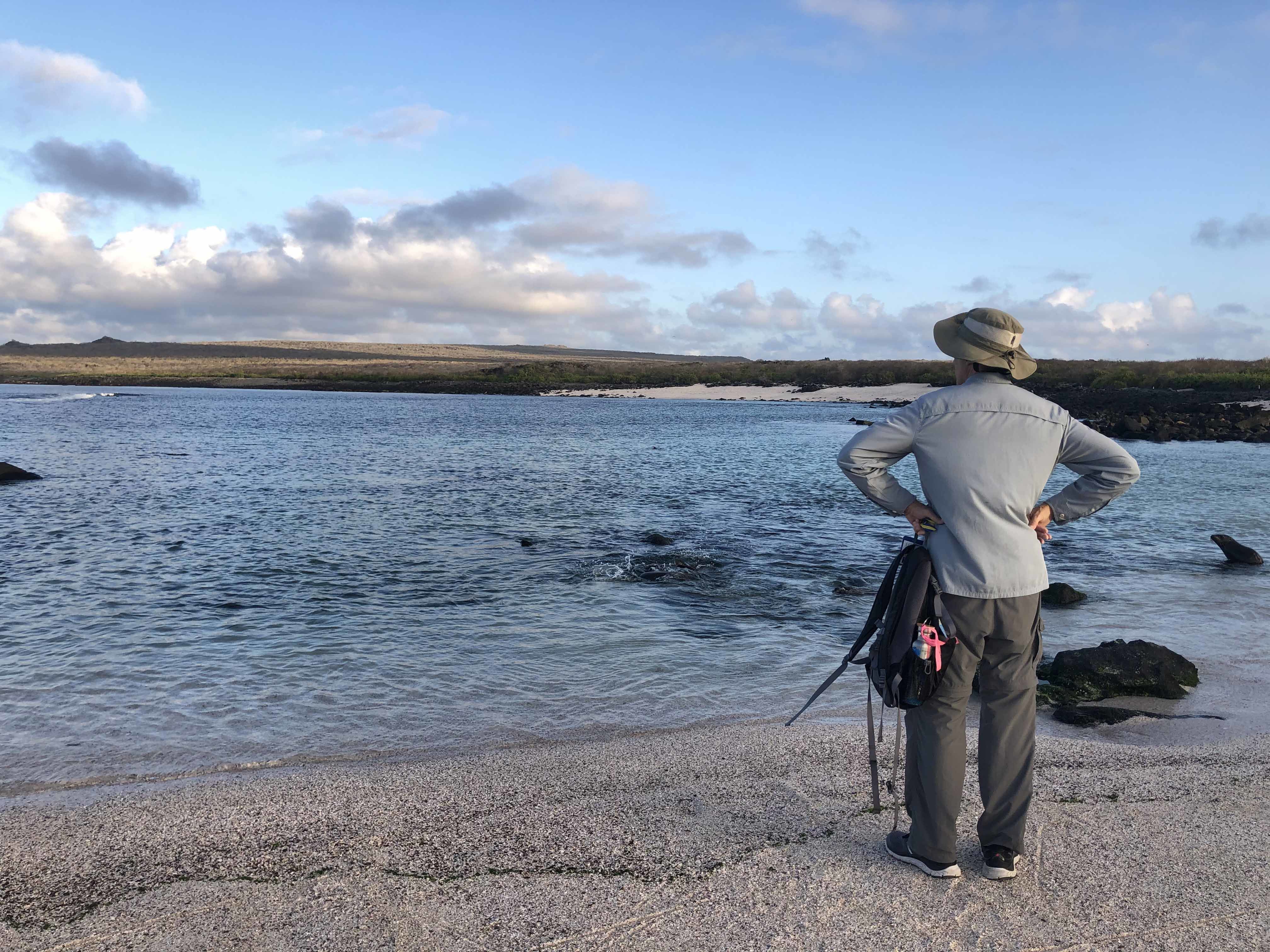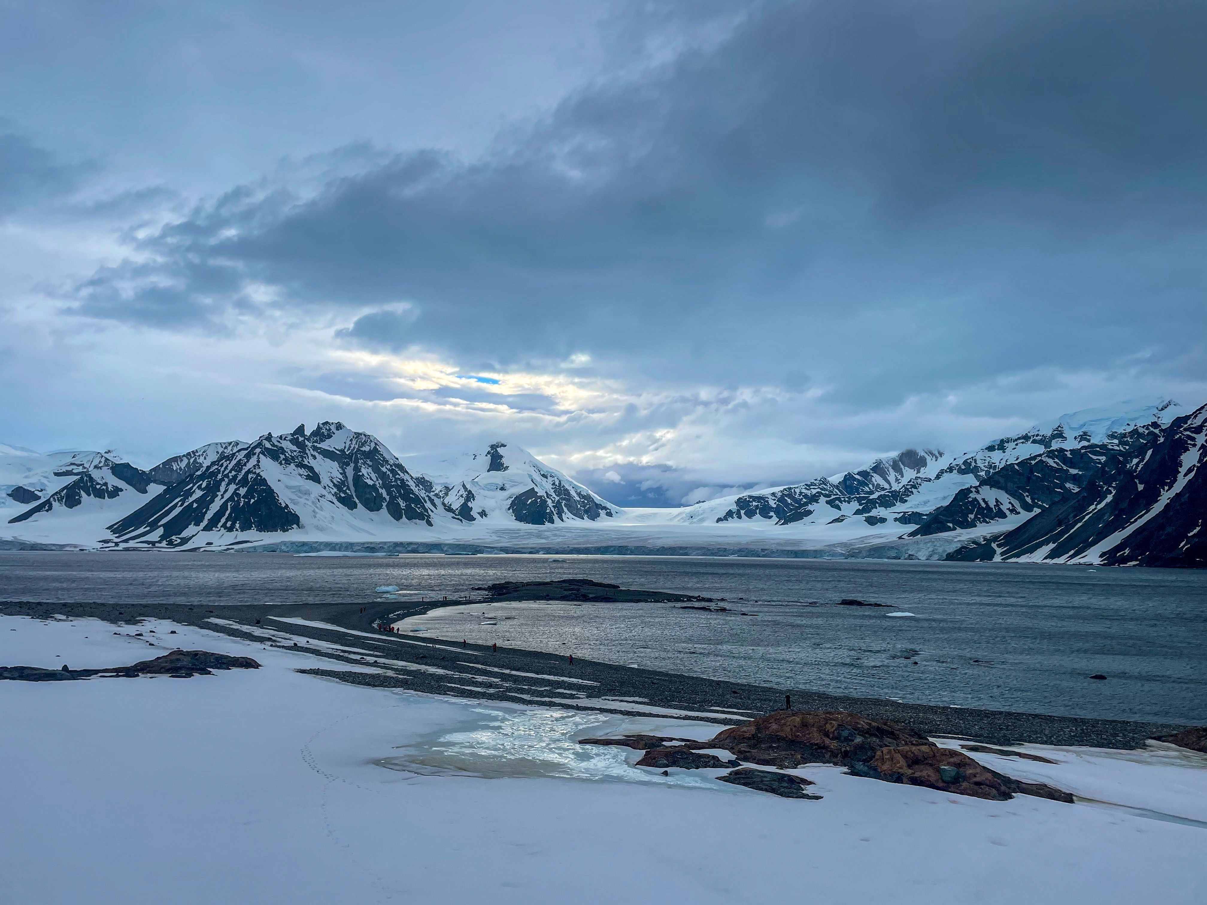 We woke up early this morning to take advantage of the calm weather. We set out to explore Pourquoi-Pas Island, named after Charcot’s second Antarctic expedition ship. We hiked up the island’s moraine to gain lovely views of the bay. We also enjoyed a leisurely walk along the shore. Along the way, we spotted a few more Adelie penguins, skuas with their chicks, kelp gulls, a Weddell seal and a crabeater seal swimming through the water. In the afternoon, we explored a brand-new area on Horseshoe Island, pioneering a new hike up one side and down the other into Gaul Cove. We enjoyed beautiful views of the cove and glacier. The hike was full of beautiful pink granite and stunning geological views all around.