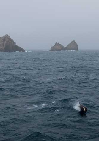 The only thing that one can truly expect when embarking on an expedition is that not everything will happen according to plan. Weather changes and wildlife always appear right as lunch is being served. Onboard the National Geographic Explorer “the plan” starts as more of an outline, something of a rough draft with text that is constantly shifting. The only option is to remain flexible and schedule the day around what is happening at that moment, not what sounded like a nice idea several days ago. For example, when it is your turn to write the Daily Expedition Report one must think of what kind of photo to take to accompany it. This can be more challenging during a day at sea because sea birds can’t be counted on to cooperate and hover picturesquely within camera reach, although they very frequently do. Still being very southerly, sunsets and sunrises aren’t as reliably dramatic either, though once again they can be. So when the course for the ship guarantees us passing by the only bit of rock out of several hundred miles of wide-open ocean, aiming to capture an image of what is literally a solid sure thing.