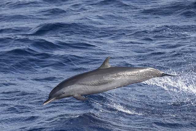 I love to spend time out on deck while at sea; some people may find it boring, but not the attentive observer. There is always something going on and today several of us had the chance to watch several marine creatures including sea turtles, flying fish and sea birds. The occasional brown booby flew around Harmony V and an immature one even landed on her for a short rest! Every now and then the ship's movement scared flying fish and made them take off and glide over the waves for surprisingly long distances while some among us rubbed their eyes in disbelief of what they were looking at!  But everyone's favorites were some stenella dolphins that followed us for quite a long time; several went riding the pressure wave that the ship's motion creates in front of the bow, while some others jumped over the surface as they raced each other towards us.