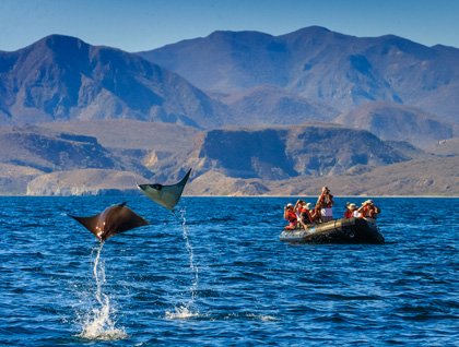 We started a new day with a wonderful sunrise at sea, and the clean atmosphere provided the perfect setup for a nice green flash; several sceptics were converted and the believers reaffirmed their convictions. National Geographic Sea Bird sailed north alongside San Ildefonso Island when a group of long-beaked common dolphins was discovered by observers on the ship’s bow. We approached the dolphins and watched them as they swam and jumped next to us, many of them showing large remoras hanging on their sides or bellies. Remoras –also known as shark-suckers—are fishes with a modified dorsal fin that acts like a suction cup, allowing its owner to attach itself to larger marine creatures like sharks, sea turtles, whales, or dolphins. They don’t cause any harm and get a free ride while waiting to feed on scraps of their host’s meals.
