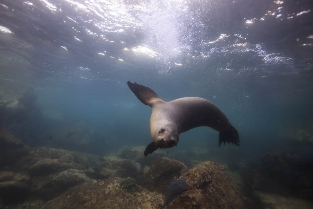 The seas are calm today and the largest birds in the world are drifting along behind us. The sky is a continuous, flat grey and the air still holds a chill reminiscent of the icy world in our wake. In that direction, we lay a sinuous trail of turquoise as our bubbles mix with the dark blue water and rolling swell.