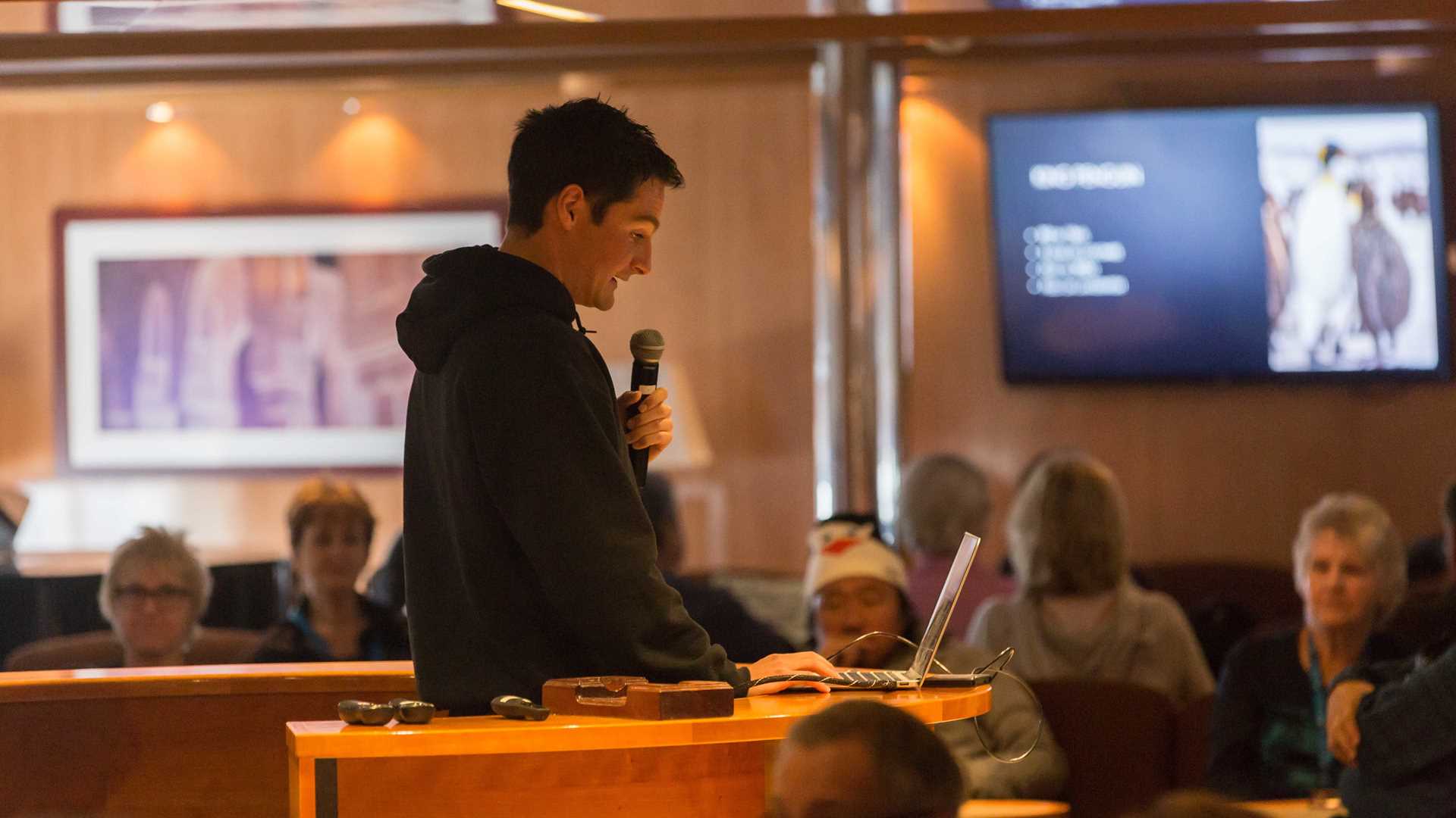 Clocks went forward one hour today… Today we spent the whole day at sea again, but used the day well to ensure we arrive at South Georgia well prepared in terms of bird identification, geology and whaling history. The afternoon was also spent covering the IAATO (International Association of Antarctic Tour Operators) and South Georgia briefings aimed at minimizing our impact on these precious environments. After the briefings we then went carried out the “decontamination process” – outdoor clothing tends to pick up dirt, organic matter and seeds which we don’t want any ending up in the Antarctic in case they spread diseases or invasive species. So we vacuumed clothes and scrubbed and washed footwear in cleaning solution to kill anything lurking on them. At 19:15 ship time we sailed close by shag rocks- a rocky outcrop rising up from the ocean, miles from any other landfall and named after the many shags that use the rocks as a breeding site.