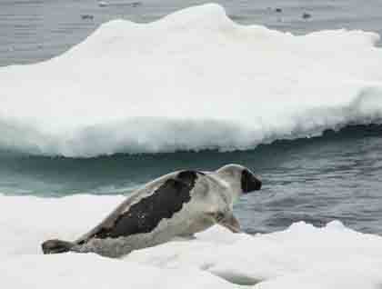 During the late afternoon, as we wound through another patch of sea ice off the east coast of Greenland, we discovered a dense group of harp seals. It was remarkable to see so many together and to wonder just what had brought them here . . . instead of somewhere over there.