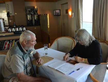 As part of our expedition, the ship made a generous donation for each of us to the Orangutan Foundation International and in doing so we had each officially adopted a young orangutan to be cared for by the organization. After lunch, Dr. Galdikas was available to personally sign our adoption certificates and told us captivating stories about how each of these young orangutans were saved and how each one had their own personality.