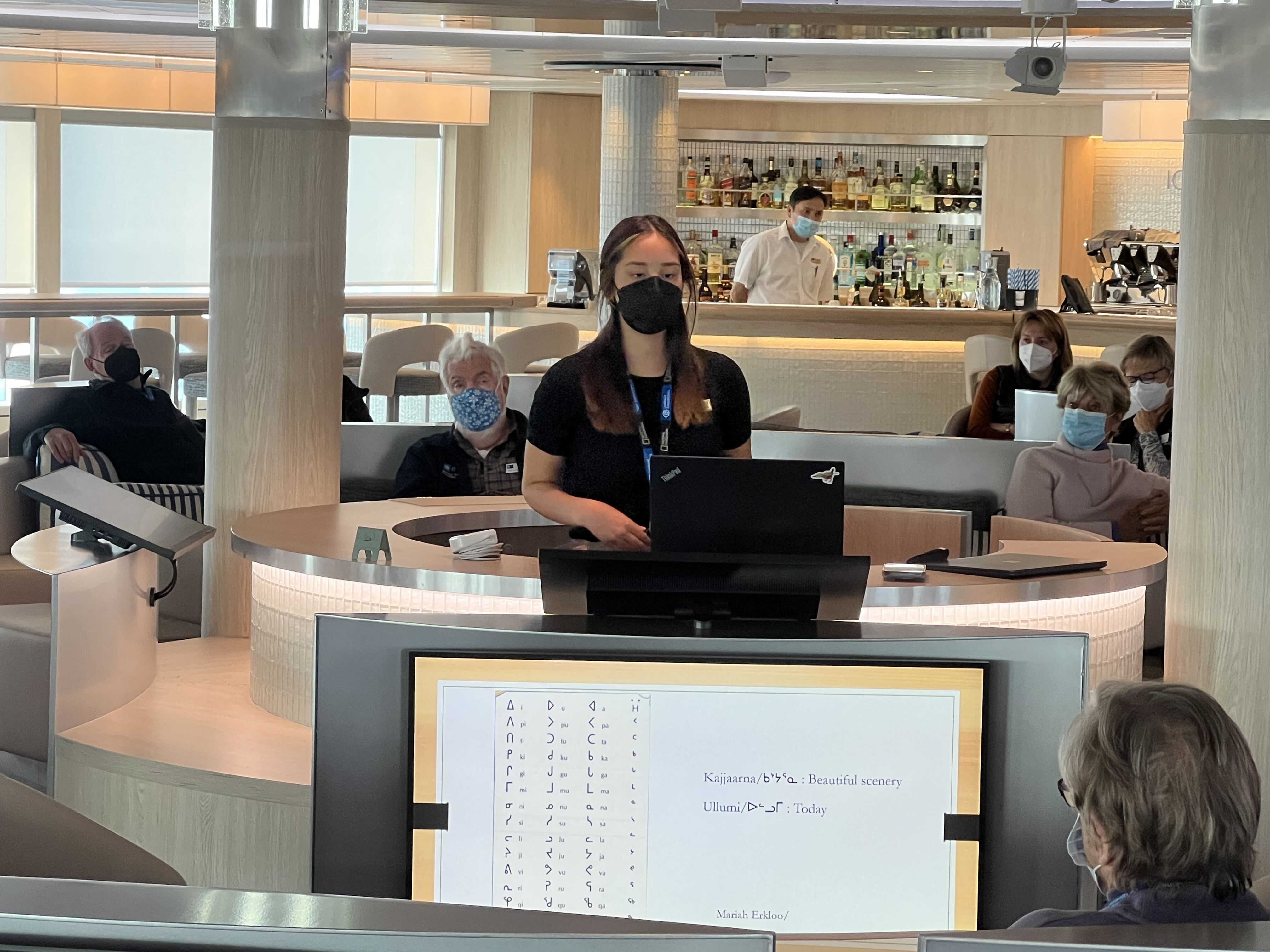 Our lovely Community Ambassador, Mariah Erkloo, started off activities with her presentation on, “Inuktitut – An Introduction to the Inuit Language of Nunavut.”