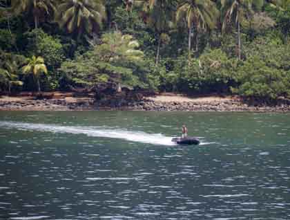 It’s 4:00 p.m. now and we’re passing by islands in the Torres Strait.  A National Geographic expert is on deck giving us inside information on the World War II activity that had taken place here.