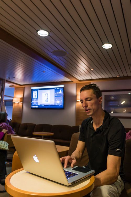 Today began with a later-than-usual wake-up call as well as a favorable time change of the ship’s clocks—very welcome after a busy week in South Georgia, the enchanted isle. The day was filled with sumptuous meals and delightful presentations by the staff, our National Geographic photographer, and our guest speakers. After dinner, we were treated to a preview of the video chronicle of our adventures over the course of the trip.