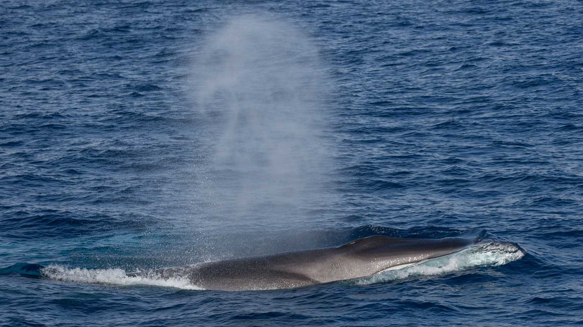 Calm seas are by far not the standard for the southern oceans… nevertheless; we have had two days of extremely benign long rolling swells on our way from the Falkland Islands to South Georgia. Deep gray skies with intermittent rays of light poking through made for a very melancholic and even dramatic morning, add the scattered snowflakes here and there and the signs are clear, we must be sailing Antarctic waters. The polar front, where the cold waters of Antarctica meet the warmer sub Antarctic currents is the biological boundary of Antarctica. In the area we navigated today, the convergence takes a twist to the north that surrounds the island of South Georgia, making it part of the Antarctic. Several lectures and presentations wetted out appetite for what it is to come in the next days as we get to explore ‘the jewel’ of the southern oceans. However the day was by all accounts, a whale day! The productivity of these waters was proven in the afternoon when we found at least 17-20 finback whales, a couple of blue whales and a mother and a calf humpback whales feeding at the same time! Not very often you see three species of baleen whale at the same time and less than a hundred meters from the ship.