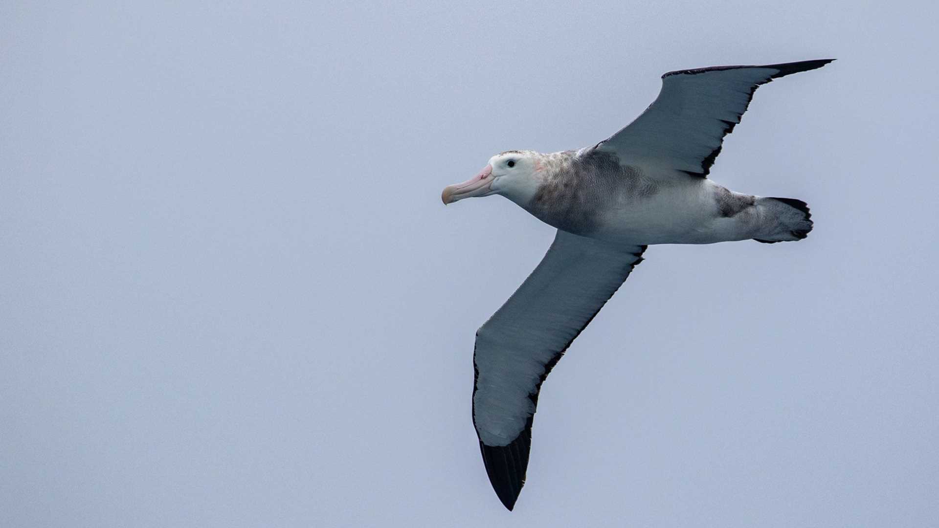 National Geographic Resolution sailed west toward the Falklands immersed in fog. Birders were teased all morning with brief views of small petrels and albatrosses zipping in and out of visibility. After listening to naturalist Rob Edwards talk geology, guests headed outside. They were delighted to see that the fog had lifted, and three wandering albatrosses cruised effortlessly above the wake of the ship. It was the smaller birds that stole the show, though, with grey petrels, great shearwaters, and soft-plumaged petrels all showing off their agility in the winds. As the day progressed, we were joined by the first skuas of the passage, a sure sign that we are getting close to land.