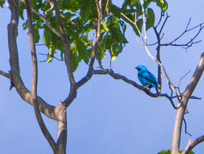 Today we reached the deepest part of the Pacaya-Samiria Reserve along the Upper Amazon. We started the day by exploring by skiff at 0630 in the morning. We traveled up the Atún Poza River in search of wildlife. We had really good views of a three-toed sloth that was very calm and fairly low on a cecropia tree. A plum-throated cotinga perched over a capirona tree, while we tied up the three skiffs to enjoy an outdoors breakfast at "The Jungle Café."