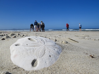 Our first morning aboard the National Geographic Sea Lion, we awoke in Bahia Magdalena, surrounded by sand dunes. We were eager to make our first landing here in Baja California Sur and scuttled off of the ship promptly after breakfast. We landed on Isla Magdalena and our bare toes were happy to touch the soft sand. The large dunes hosted succulents and other desert plants, and a variety of different animal prints. We saw prints belonging to jack rabbits, coyotes, lizards, and beetles. After a 25-minute walk across the sand dunes, we reached the Pacific Ocean. The beach along the Pacific is appropriately named Sand Dollar Beach; sand dollar tests could be spotted as far as our eyes could see! With the no collection policy on the beach, beautiful shells and skeletons were available for our viewing enjoyment-what a treat!