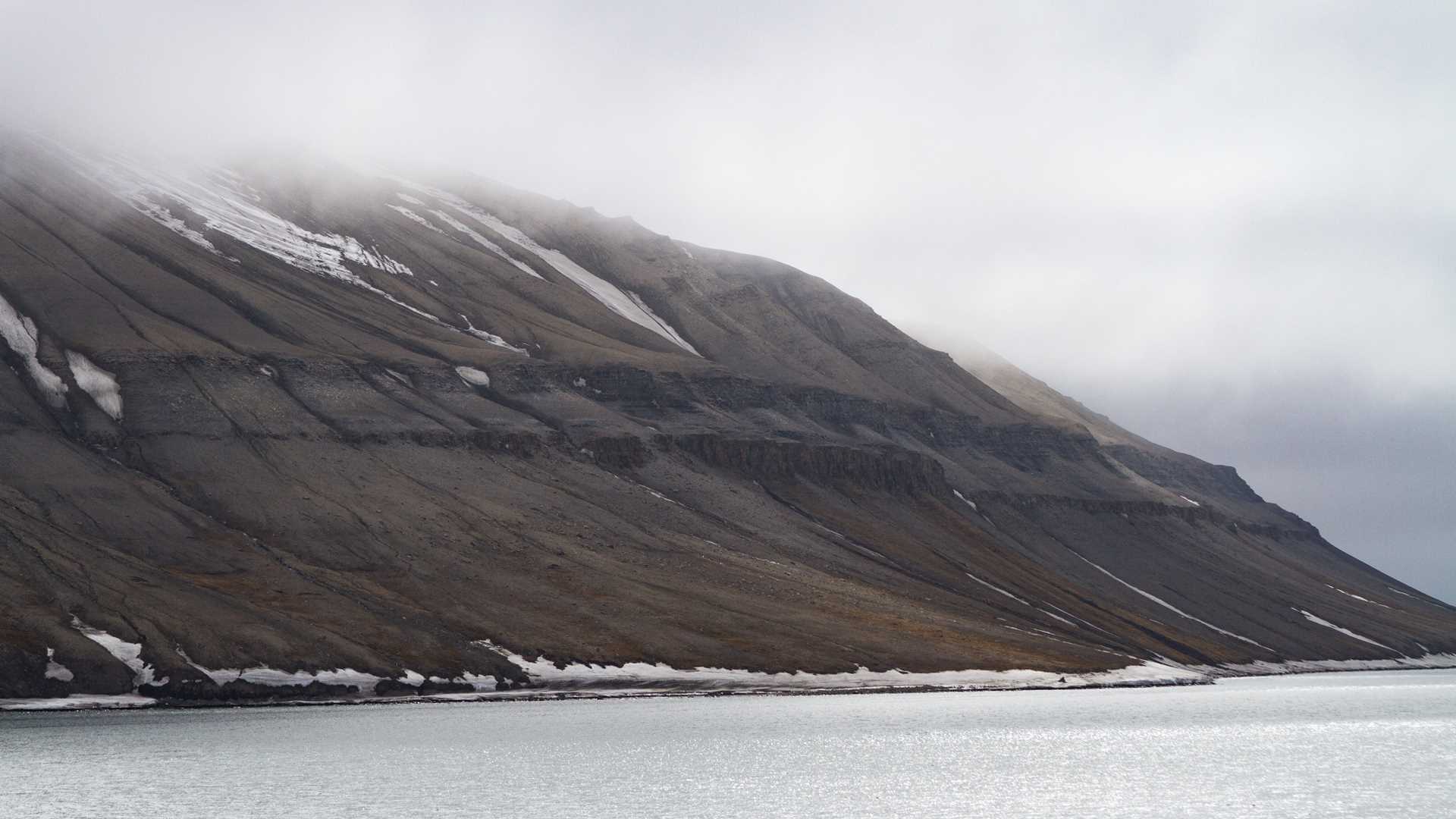 Fog hung over the landscape this morning, creating a dramatic view of the slopes at the southern end of Barentsøya and the passage between Barentsøya and Edgeøya was spotted with crumpled chunks of ice. Strong tidal currents in this narrow passage causes the ice to move back and forth and crash into each other. Fortunately the passage had become clear of ice, so from the west we were able to get close enough for a morning of activities.