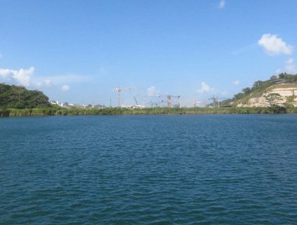 Once we returned to National Geographic Sea Lion our next Panama Canal pilot arrived to our astern; excellent news! We will have a mid-afternoon transit. Then we repositioned to the entrance of Gatun locks; however while we were waiting to enter the west lane of Gatun locks, on the bridge, our second mate Christian Breeding with the consensus of the Panama Canal pilot provided the unique opportunity to witness the work of the expansion and creation of the new set of locks on the Caribbean side.