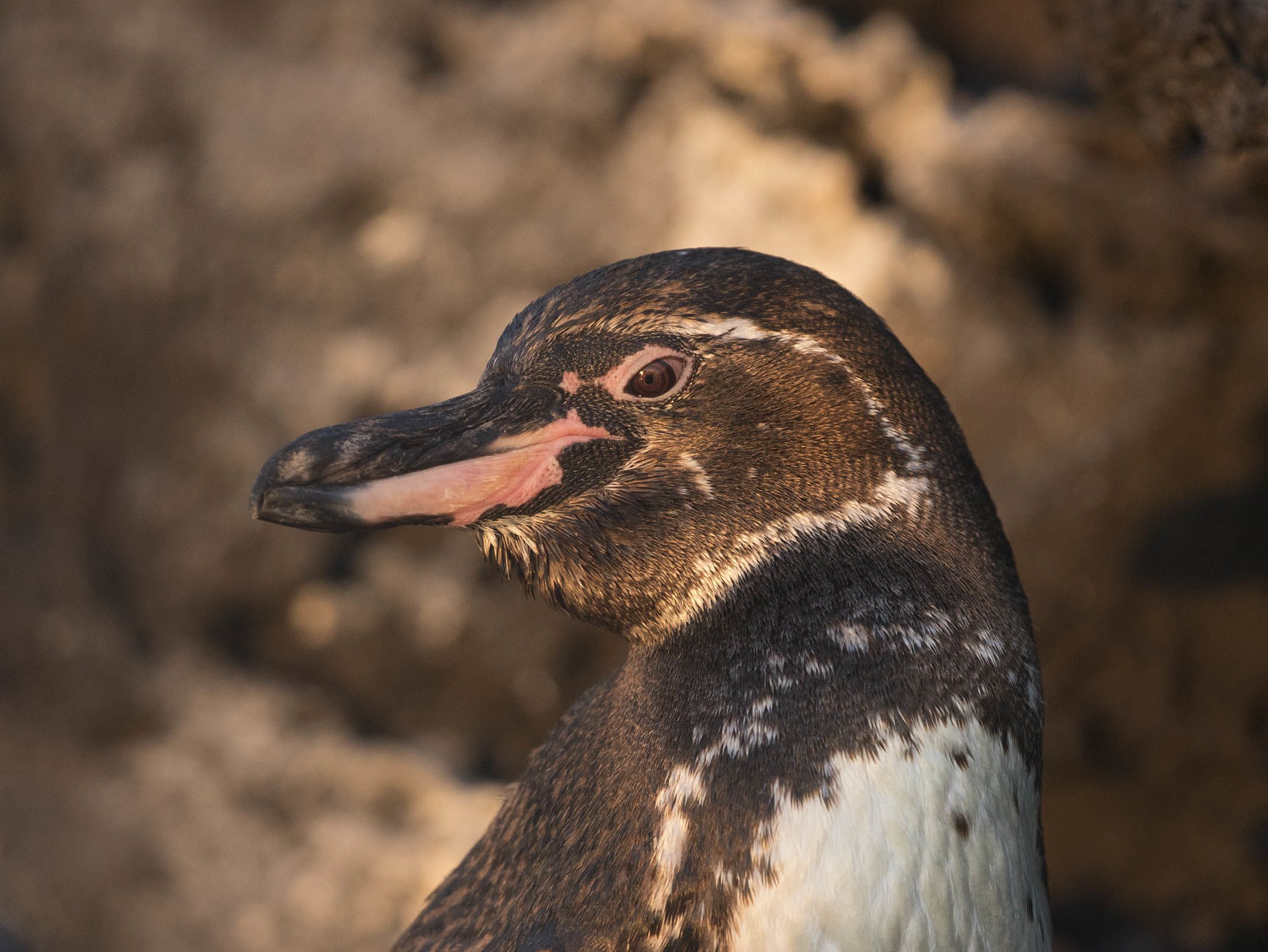 After snorkeling, we went on a Zodiac ride along the coast of Chinese Hat and Santiago to look for Galapagos penguins, so we could photograph them.  We were lucky to find a couple of penguins, striated herons, brown pelicans, and a small colony of Galapagos shearwaters.