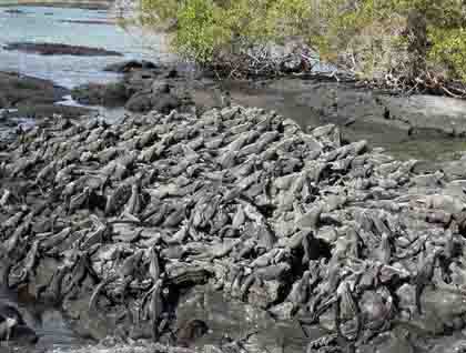 Walter took the kayakers for a long smooth paddle down the coast where they saw pelicans, sea lions, fur seals, and boobies. Jonathan and I took snorkeling groups into the cool water where we swam among zillions of fish of at least 20 different species. Highlights were seeing a couple of white-tipped reef sharks, a feeding marine iguana and playing with some really fun and graceful sea lions that swirled and twirled around us.