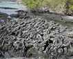 We moved from our anchorage north of Baltra at 3:00 a.m. and in two and a half (slightly rocky) hours reached Bartolome. As soon as the anchor was down our crew lowered the Zodiacs and at 6:00 a.m. I gave an optional wake-up call, heard only by those who had set their PA system dial on channel one, for those who wished to join us on a pre-breakfast hike. No one who took the hike was in the least bit sorry for making the effort to climb the 370 steps to the summit of Bartolome – as we often say, the view from the top was worth every step and every breath taken on the way up. We saw many volcanic features: spatter and cinder cones and small lava tubes. And the colors were amazing – surprising really – the reddish tones of the older cones, beige tuff and a huge expanse of barren black lava that dates from 1897 contrasting with golden and white sand beaches, a swath of green mangrove shrubs and the azure ocean beyond.