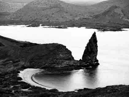 It is the second day of our voyage around the Galapagos Islands and we have visited just the center islands so far. During the morning the National Geographic Islander anchored on the most popularly landscaped island, Bartolome. Its explosive volcanic eruptions plus the erosion caused by the water has formed spectacular shapes on the landscape here. So in order to enjoy this place we had to start just before breakfast, which meant waking up a little bit early. But once we got to the top, everybody could tell how worth it was to sacrifice some sleep.