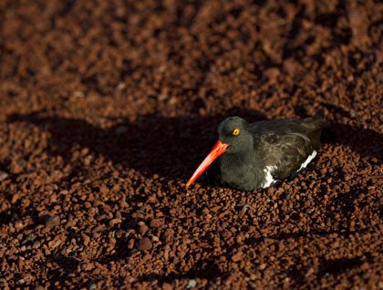 In the afternoon we anchored at Rábida Island. On kayaks, we explored the shore, which was dotted with sea birds, sea lions and marine iguanas. At the snorkeling site, we were practically surrounded by black-striped salemas and many other types of fish such as parrotfish and yellow-tailed razor fish. Right before sunset we landed on a beach at Rábida Island, where saw sea lions resting on the most unusual red sand also shared by oystercatchers, pelicans and blue-footed boobies.