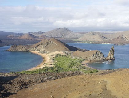 It was a beautiful morning! The sun was shining and there was a nice warm breeze. It was time to start our activities. Before breakfast we boarded the fleet of Zodiacs to disembark on Bartolomé Island. On this island the process of colonization is carried out by pioneer organisms, which is quite remarkable. There are only a few creatures here such as snakes, lava lizards, some grasshoppers, and small plants. Only these can tolerate the extreme conditions of this place, which experiences heat and drought for most of the year.