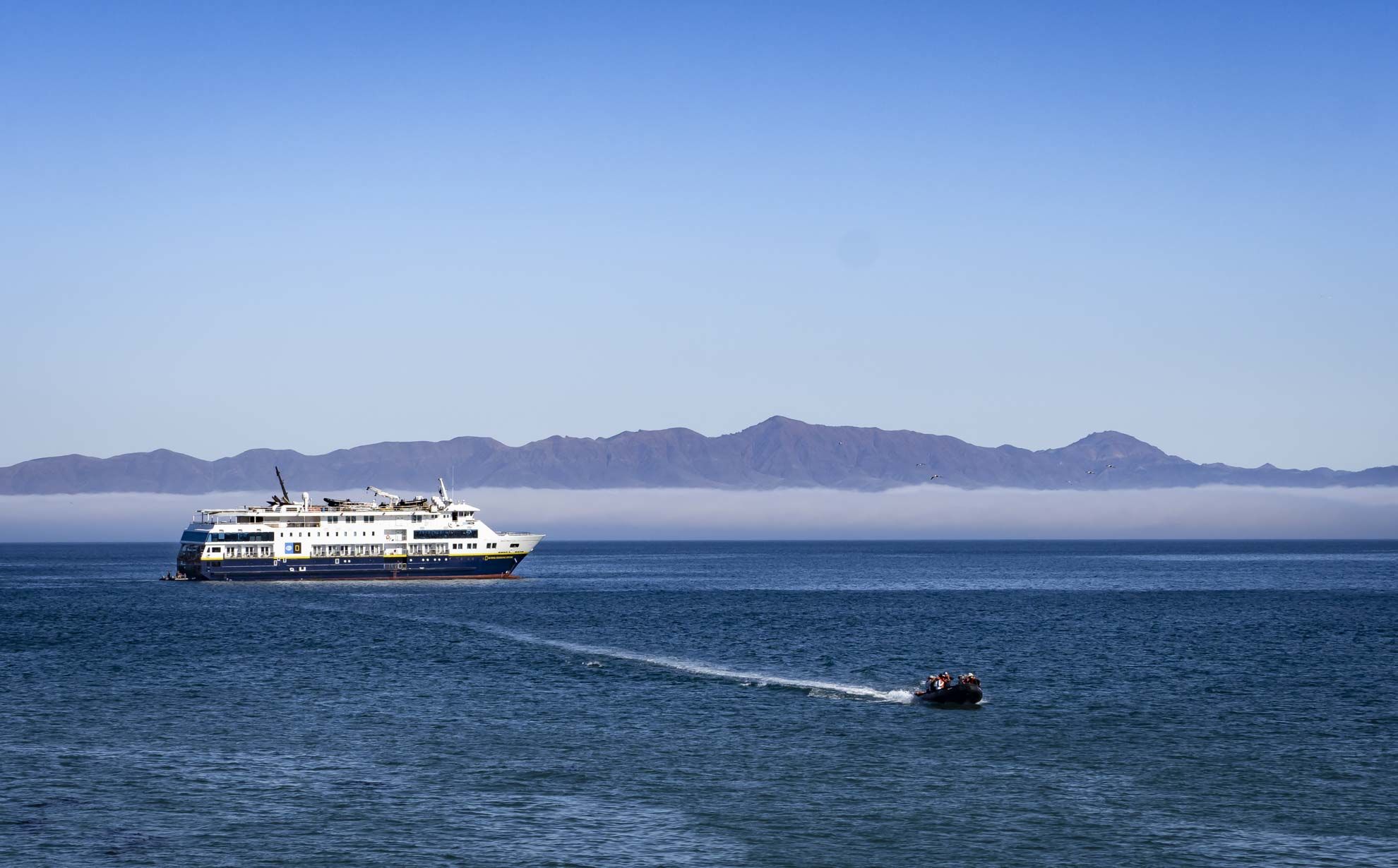 On National Geographic Endeavour II today, we explored Bartolome, home of a small colony of Galapagos penguins. Bartolome is one of the youngest islands, and it is located next to Santiago Island in the central part of the archipelago. After an amazing sunrise, we went ashore for a walk, and we were transported back to a time when the land was newly formed. We began our day by hiking to the top of a tuff cone known as the islet of Bartolome, named after the First Officer of The Beagle . Walking on this young island allowed us to understand the formation and volcanism of the Galapagos Islands. The rocks are a great way to understand the area and its geology. We spotted a few lava lizards and painted locusts, some of the very few animals on this island. As we reached the top, we had a great view. Our guests enjoyed the magnificence of Pinnacle Rock. After we visited one of the most iconic geological formations of the Galapagos, our breakfast was enhanced by dramatic views of the impressive volcanic landscape. We visited the beach near Pinnacle Rock, where we enjoyed how the sun made the sand sparkle due to a concentration of silica. Later, we went snorkeling along the channel between Santiago and Bartolome Islands. Many of our guests spotted whitetip reef sharks and very colorful parrotfish. The landscape was beautiful with lots of sea stars. We enjoyed the chance to be surrounded by Galapagos penguins and feel accepted as part of this environment. After a delicious Mexican lunch, we had lectures on the photography of reptiles and Darwin. Afterwards, we went to Chinese Hat Islet to snorkel from the Zodiacs. The area is home to a small colony of Galapagos penguins. In a sandy-bottomed, sheltered channel, our guests enjoyed swimming with whitetip reef sharks, rays, and many fish. It was a nice and sunny afternoon. After snorkeling, we had the chance to explore the unique, small volcano that formed an island in front of Santiago on a sunset Zodiac ride. After a spectacular day full of activities in the field, we returned on board. Every day in the Galapagos is an opportunity to reconnect with the beauty of nature through unbelievable encounters!
