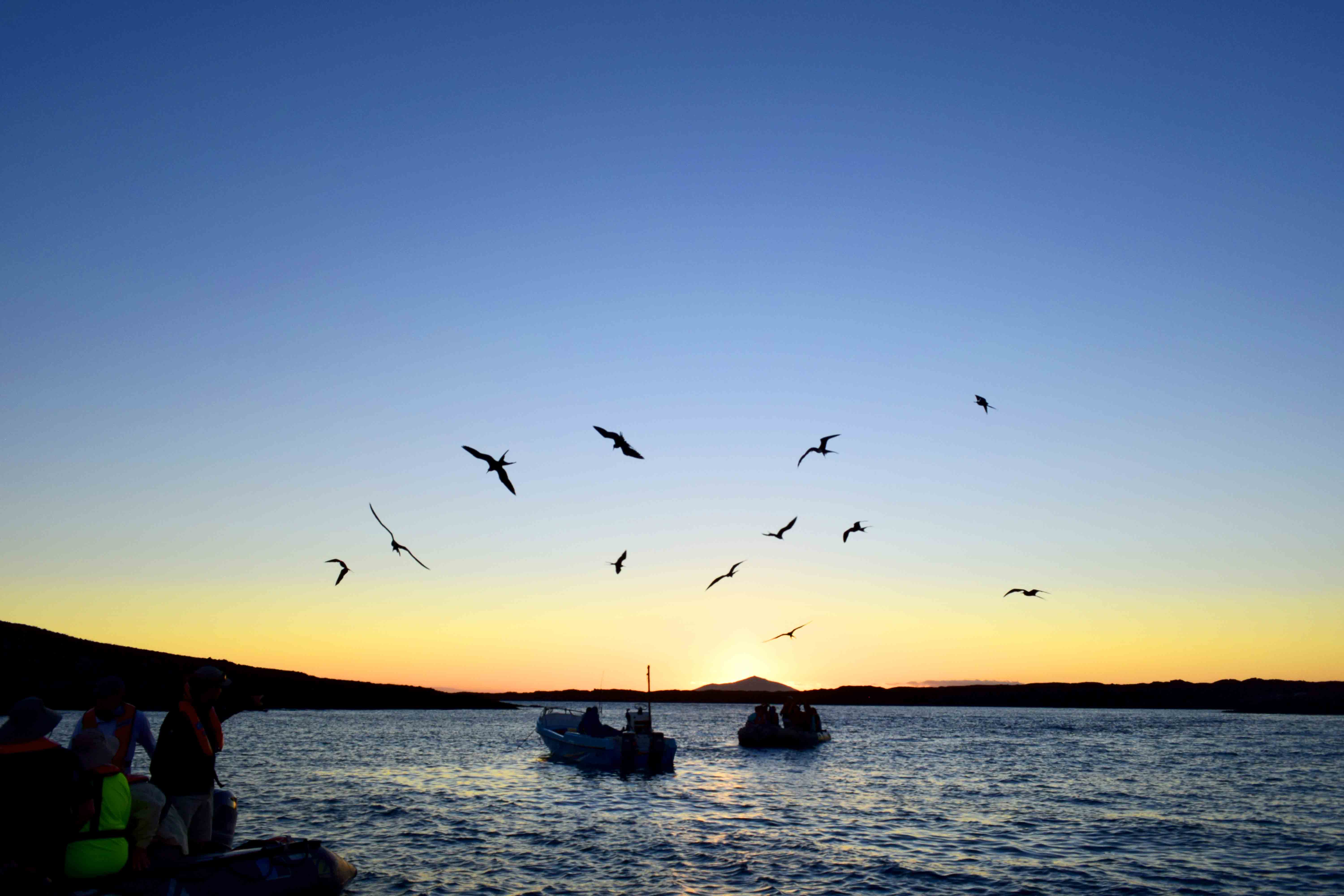 This morning started with a gorgeous sunrise! We all then went out on a pre-breakfast outing hike up to the summit of Bartholomew Island. On the way up the stairs, we learned about the volcanic formation of the island. It was fascinating to learn about the pioneer plants and how life begins with the rebirth of volcanic islands. The stray cacti on the otherwise barren landscape attests to the power of Mother Nature. When we reached the summit we were treated to spectacular views of the surrounding islands, including Sombrero Chino which was our afternoon destination. After breakfast on board the National Geographic Endeavour II , we then went to a white sand beach to snorkel and explore the sea life. There we were treated to sightings of several varieties of sea stars, parrot fish, and a true highlight was an encounter in the water with two Galapagos penguins! Then we had the chance to snorkel in deeper waters along the coast of lava flows. There we saw a marbled ray and white-tipped reef sharks. We ended our snorkeling excursion with a close-up penguin encounter. The afternoon kicked off with the reposition of the National Geographic Endeavour II towards Sombrero Chino. While navigating we had a photography lecture. Once we dropped anchor we had another round of deep water snorkeling. More of the exciting Galapagos marine life was spotted! The highlight of the afternoon was a Zodiac ride just before sunset. The light was spectacular. Galapagos penguins were perched on the lava flows for all of us to admire. Great blue herons and pelicans put on a display for us to complete another amazing day in the Galapagos!