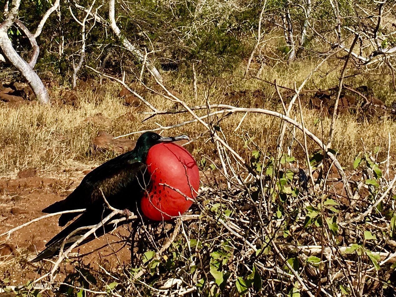 We woke up to super calm waters off the northern coastline of Floreana Island. Perfect conditions for a bit of kayaking among the offshore islets near Post Office Bay! Brown pelicans, egrets, green sea turtles, and red, black, and white mangroves…a peaceful environment for an hour or so before breakfast. Some guests went straight to the beach to walk a few yards through saltbushes and found themselves facing the famous “barrel” of Post Office Bay. It’s been over a century since the barrel was first placed here for use by whalers to exchange correspondence and carry back letters of business, or perhaps letters to loved ones. Today, postcards fill the barrel, but the turnover is fast. Each day, some of the postcards are taken for delivery while others are left behind in hopes that someone will continue the tradition and hand-deliver them in the weeks to come. Between breakfast and lunch, we played in or on the water around Champion Islet, just to the northeast of Floreana Island. We didn’t make a landing but explored by Zodiac, including a birdwatching circumnavigation followed by deep-water snorkeling in incredible waters with parrotfish, angelfish, pufferfish, damselfish…all kinds of fish! Sea lions buzzed by, desperate to draw attention and get a reaction out of us, which they did. Squeals and shrieks were heard. After an instructional briefing on iPhone photography and a presentation on Charles Darwin in the afternoon, we went ashore on the main island of Floreana. There has been quite a drought this year and not much rain the previous year either. The land was dry, the vegetation was brittle, and dead leaves were everywhere. But all that is fine for the native and endemic species; after all, they’ve been through this before, over the millennia, and survived. The stress is on the introduced species who depend on higher amounts of freshwater for survival. While their defenses are down and populations are stressed, now is the time to really push for programs to eradicate introduced species. Floreana Island is ready for restoration. The National Park and collaborating NGOs are preparing Floreana to receive native species that were once thought doomed for extinction. Giant tortoises, Floreana mockingbirds, and racer snakes may yet survive and prosper with the help of these organizations. We spent the afternoon following an easy trail from a dark-colored beach of mineral origin and over the isthmus to a white, organic beach where green sea turtles were riding the breakers offshore. The turtles are not quite ready to come ashore and lay eggs, as temperatures are still too low for another month or so. But a great blue heron and frigatebird were checking out the scene, just in case someone tried for an early nesting. It will be a couple months before hatchlings try to race to the ocean in the dark of night. We returned to our base of operations as the sun set low on the horizon. National Geographic Islander II was waiting for us with hot water and the comforts of home.