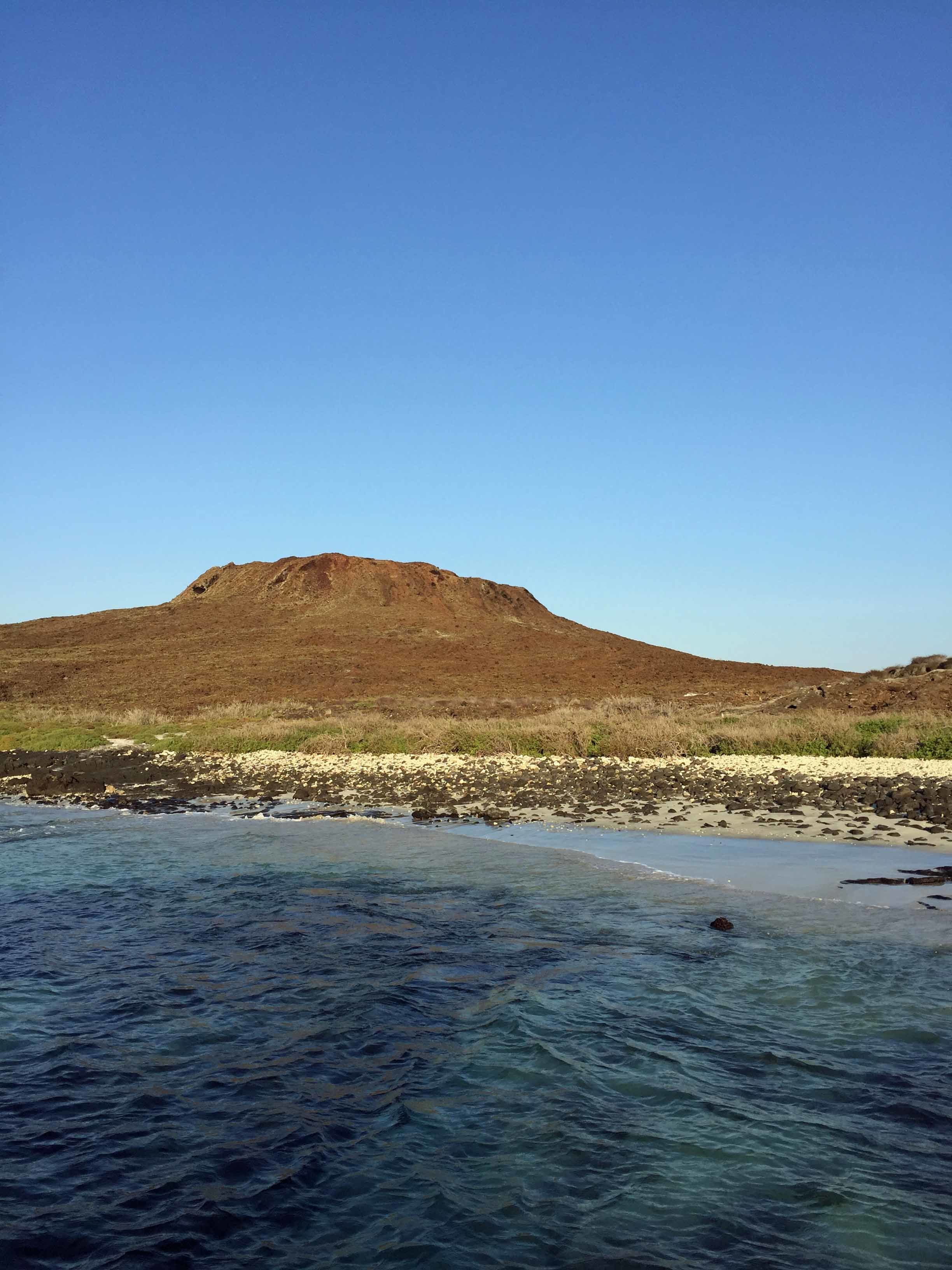 Guests onboard National Geographic Endeavour II spent the day exploring Bartolomé Island and Sombrero Chino. In large part, the day was dominated by undersea exploration. However, we began the day with an early morning, pre-breakfast hike on Bartolomé Island to enjoy a spectacular vantage point of Santiago Island. Bartolomé Island is a satellite island of Santiago. It was formed by parasitic vents that ultimately feed from the larger mother vent of Santiago Island. Guests learned about the interesting and varied geological formations of the island, including spatter cones and volcanic ash. We discussed the vegetative landscape of the island, which is extremely limited to only those plant species adapted to the harshest environments – the pioneer plants.