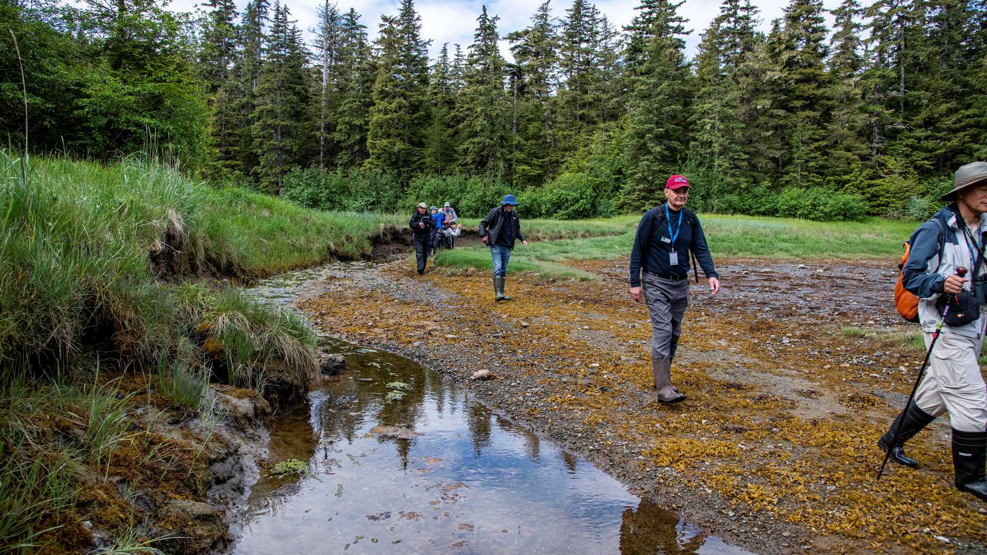 Today was a day of exploration, and our naturalists would be venturing out to new areas they had not visited before, fortunately, they took us in tow. It was an extremely low tide today, so one of the walks took the opportunity to go exploring in the tide pools. It is amazing what creatures are to be found in the intertidal zone. The most adventurous of us took to a bushwhacking hike into the unknown. We watched as the intrepid explorers disappeared into the bush, and happily all reappeared at the end of their hike. There were also shorter, less adventurous hikes. All were worth the effort.