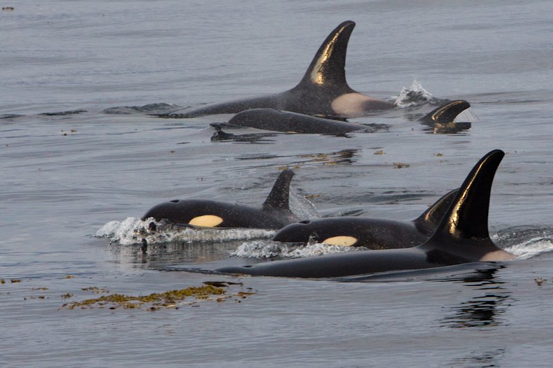 An early morning wakeup call got us out on deck for another killer whale sighting. With flat seas and patchy sunshine, it was the perfect way to wake up!  This was another group of resident, or fish eating, killer whales.  There were at least 20 in this pod, and they put on quite a show, coming right under the bow and rolling over and over.