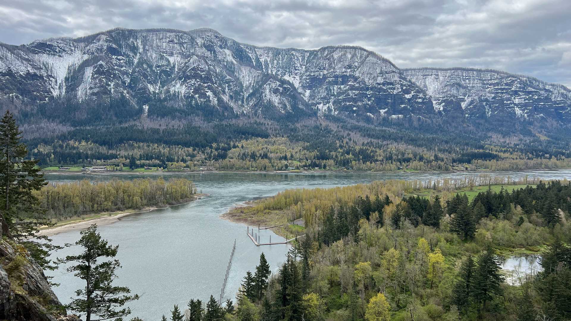 Back on the ship, we enjoyed an excellent lunch prepared by our talented galley team. In the afternoon, we set out to visit Multnomah Falls. This waterfall spans tiers of basalt cliff bands, collectively forming the tallest waterfall in Oregon, at over 600 feet. Some of the more ambitious hikers took the switchbacks to the upper falls. The mist from the waterfall provided a close look at the falling water. While at the falls, we experienced a brief episode of snow, or sleet, and moderate and continuous rainfall. In the hills beyond, we observed the effect elevation has on temperature and precipitation - the hills were covered in snow. At the base of the falls, some guests experimented with “Live Mode” on their smart phones to create creative renderings of the waterfall on their smart phone cameras, mimicking a long exposure technique.