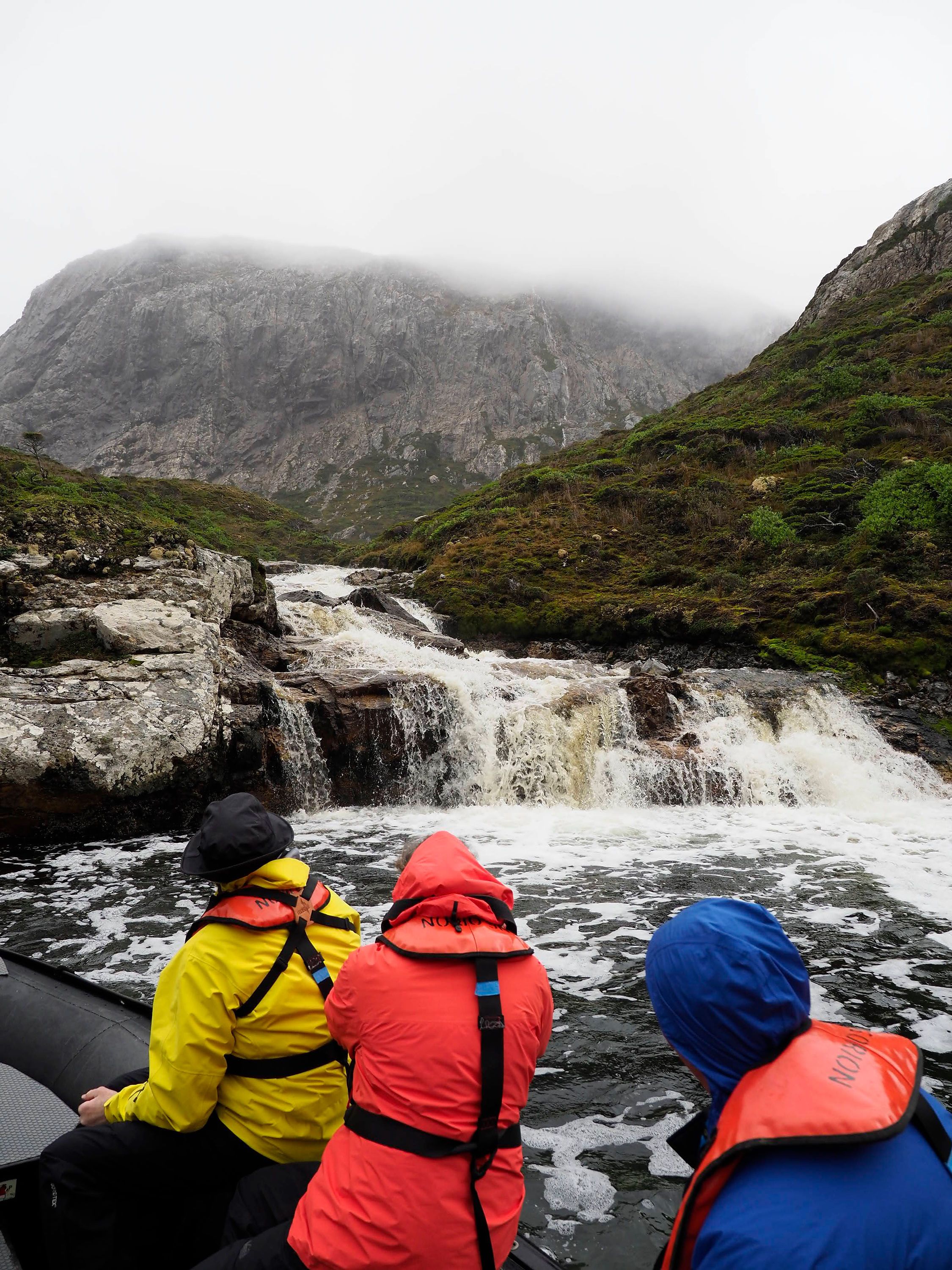 What started off a foggy day with leaden seas, turning later into a stunning blue-sky morning as we Zodiac-cruised around the face of the Garabaldi Glacier. This tidewater glacier thundered and calved all morning, as we sipped hot-chocolate and dodged the bergy bits. We worked our way west along the Beagle Channel, making a brief foray into the wild open sea of the South Pacific this evening.