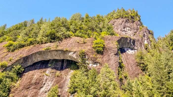 After the meal, we passed through a rock formation resembling a large owl, and we found ourselves in a secluded bay where we lowered kayaks and expedition landing crafts. We noticed that the heat had dried up many of the waterfalls normally cascading down the sheer rockface. Even the streams were dry—there wasn’t enough water for mature salmon to enter.