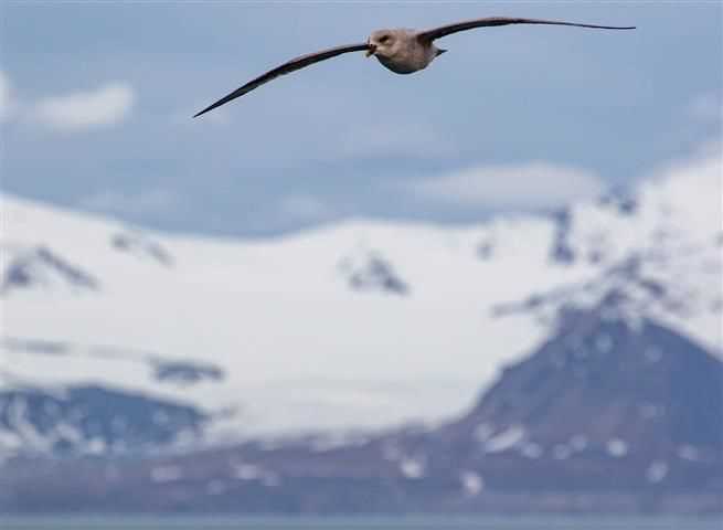 Fulmars glided low over our wake, cocking their heads at us then speeding on to fall in line with the stern, as we made our way into Bellsund. They were out constant allies during our expedition in Svalbard, their silent dark eyes observed us, as if they knew the storm to come. Bellsund was the only fjord around Svalbard currently devoid of thick fog, which was why we were steaming steadily on to seek refuge behind the mountain of Klokkefjellet.