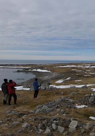 Zodiacs ferried all aboard to the shore where the naturalists divided into groups and set out in all directions. Reindeer were abundant and often curious approaching hikers affording fantastic opportunities to take pictures. Brant geese foraged in the rich grassy meadows and purple sandpipers flew about trying to attract a mate. Some hiked up a ridge to gain fantastic views while others hiked around the peninsula.
