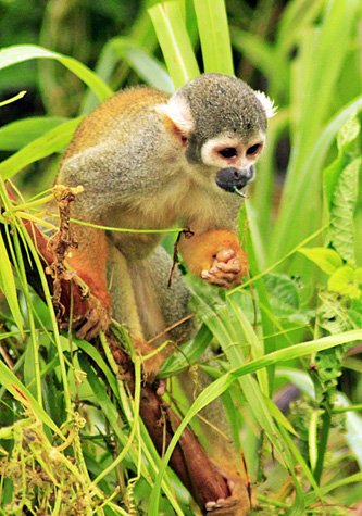 Today our activities started a bit earlier than usual. At around 6:30 we boarded our skiffs and headed out to explore the shores of the Ucayali River, looking for wildlife. After looking around forty minutes, our patience paid off, for we had wonderful sightings of a couple of chestnut-fronted macaws, green iguanas, hawks, swallows, squirrel monkey troops and more. After these sightings, we turned off of the Ucayali River and headed up a small tributary called Belluda Caño. This beautiful stream was at its best today, for it gave us wonderful personal glimpses of the rainforest and its abundant wildlife. The solitude and peacefulness of navigating along the creek, observing and listening to the forest sounds, makes you feel a real connection with nature, and makes the outside world seem so far away.